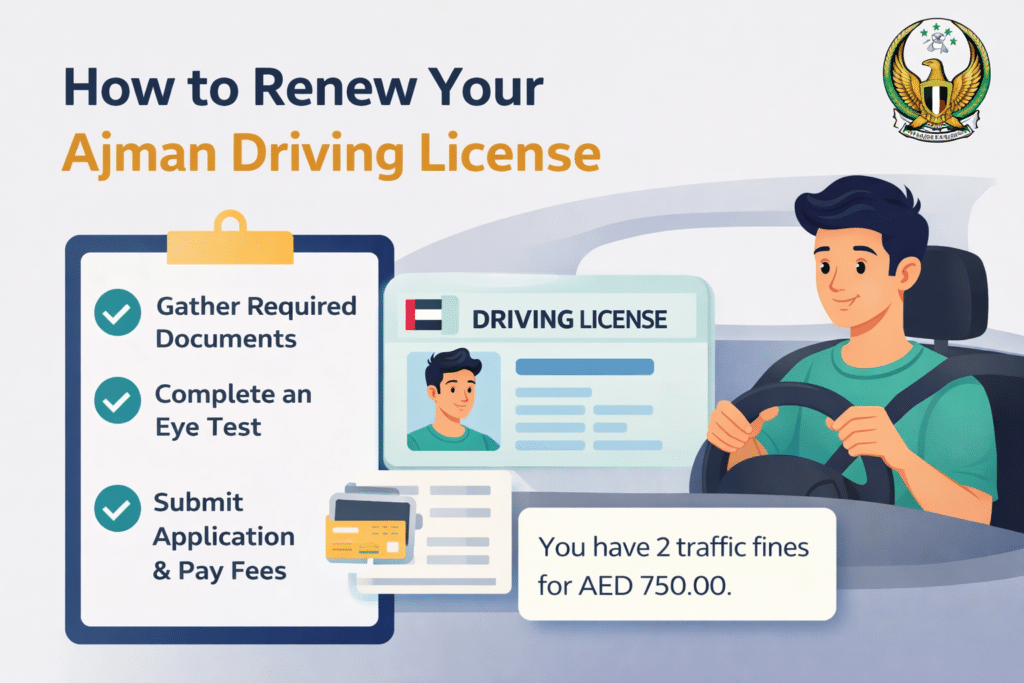 Renewing your Ajman driving license is a simple yet important process that ensures you continue to drive legally in the United Arab Emirates. Whether you prefer online methods or a visit to the Traffic Department, there are multiple ways to renew your license in Ajman.